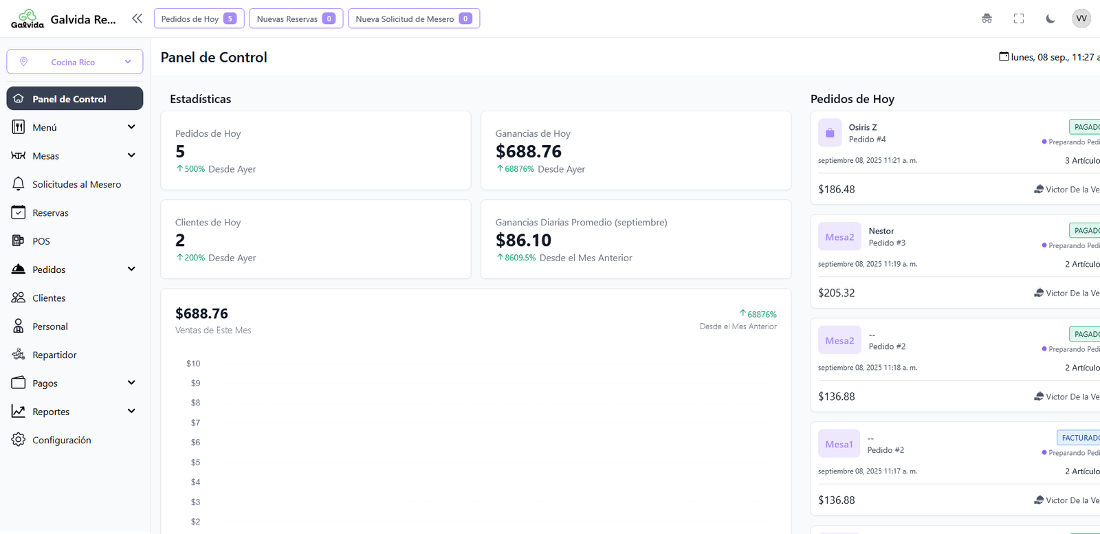 Agrega, edita o elimina platillos fácilmente desde cualquier lugar. Destaca promociones, actualiza precios y sincroniza todo en tiempo real para que tu equipo y clientes siempre vean la información actualizada.